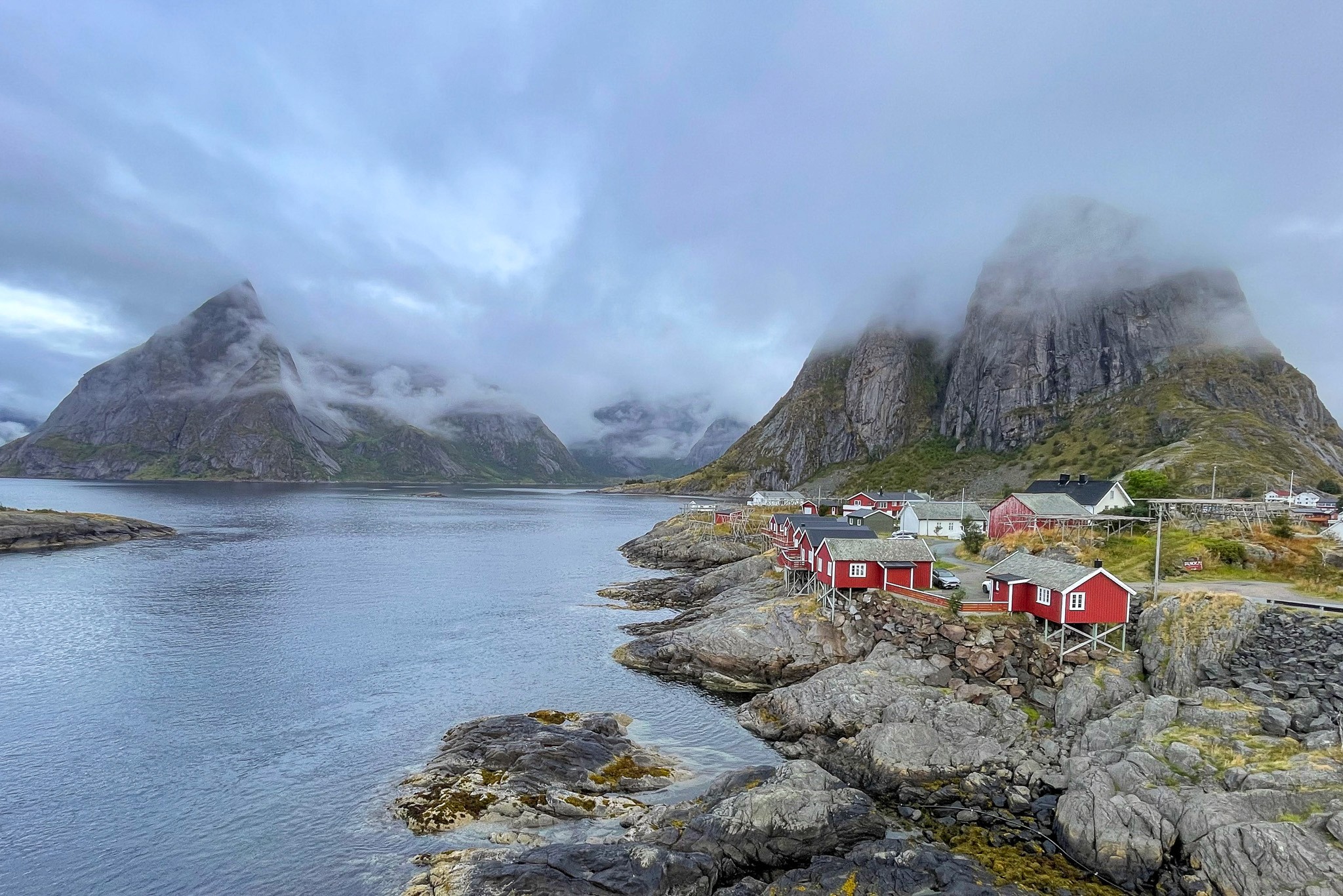 Water defines Norway, and ferries quickly become part of the rhythm. Crossing fjords offers moments of calm, warmth and perspective. Rain makes an early appearance, but it somehow belongs here. When we roll onto the Lofoten Islands via the E10, the scenery turns dramatic. Steep peaks rise straight from the sea, red fishermen’s cabins dot the coastline and drying racks for cod hint at centuries-old traditions. Nights are spent in restored rorbuer, where the contrast between rugged surroundings and refined local cuisine couldn’t be sharper.