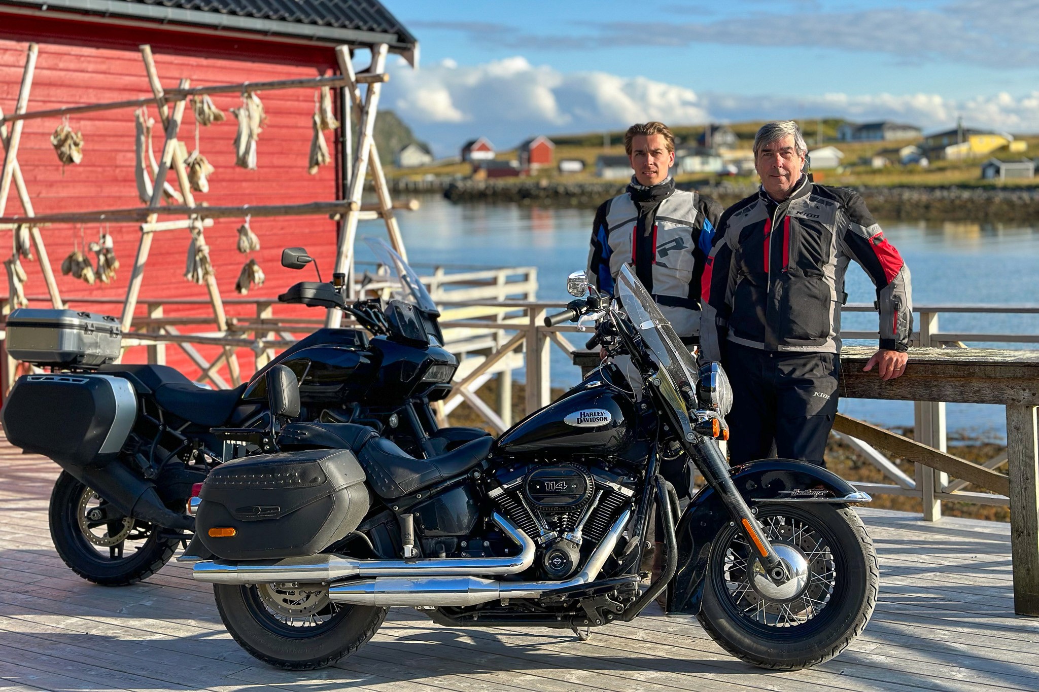 The journey starts far north of the Arctic Circle. From Evenes, we pick up our motorcycles at the world’s northernmost Harley-Davidson dealer—an unexpected highlight in itself. The riding mix is surprising: the adventurous Pan America alongside the classic Heritage Classic. I share this ride with my father, fulfilling his lifelong dream of reaching the North Cape by motorcycle. The roads immediately inspire confidence: flawless asphalt, gentle traffic and landscapes that demand frequent photo stops.