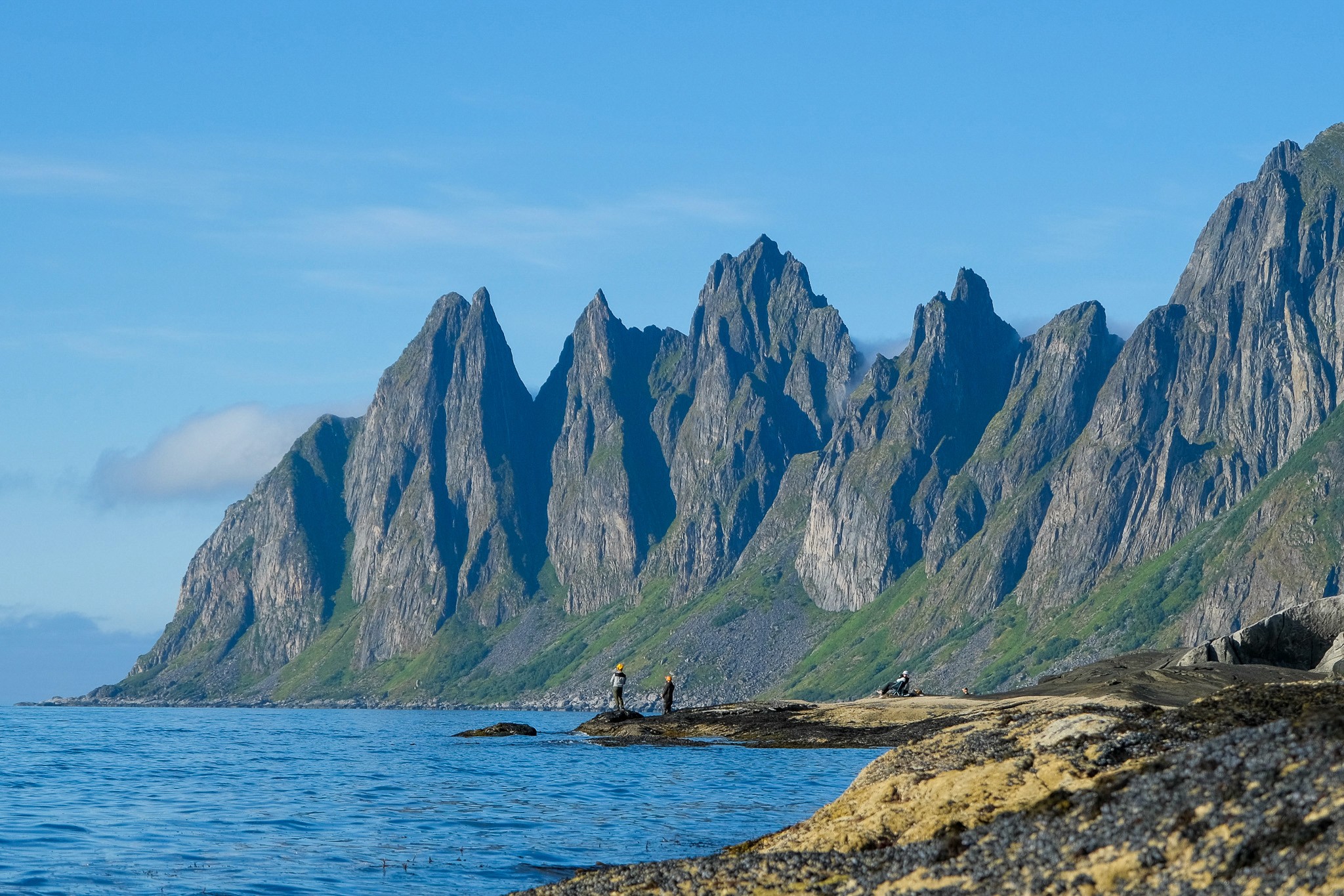 The real revelation comes later, on the island of Senja. Less famous than the Lofoten and far quieter, it delivers scenery just as dramatic if not more so. White sand beaches glow beneath jagged peaks, the sea turns impossibly blue and tunnels carve through mountains to reveal one perfect road after another. A final ferry ride at sunset seals the experience.