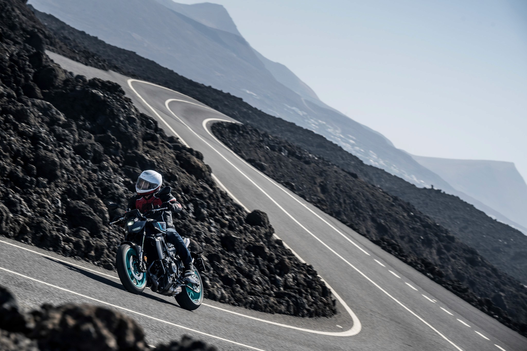 On the volcanic roads of Lanzarote, the Yamaha MT-09 proves that torque, character and fun are far from outdated.